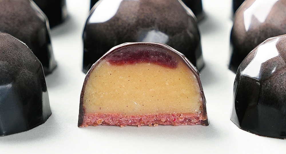 Från Martellatos vårkollektion 2024 kommer 21MA1063 Aotrom, formgiven av Camila G. Elizalde. Den påminner lite om Chocolate Worlds CW1024 och CW1521 men har en liten annan kupning och lite mer oregelbundenhet i facetterna. Formen ger 28 praliner á 9,5 gram.