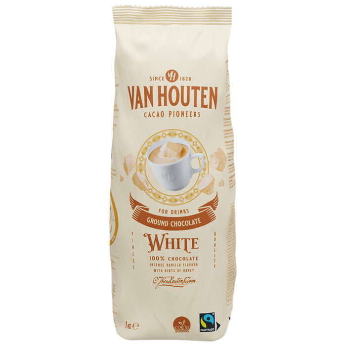 Van Houten White är ett krämigt vitt chokladdryckspulver med toner av vanilj.