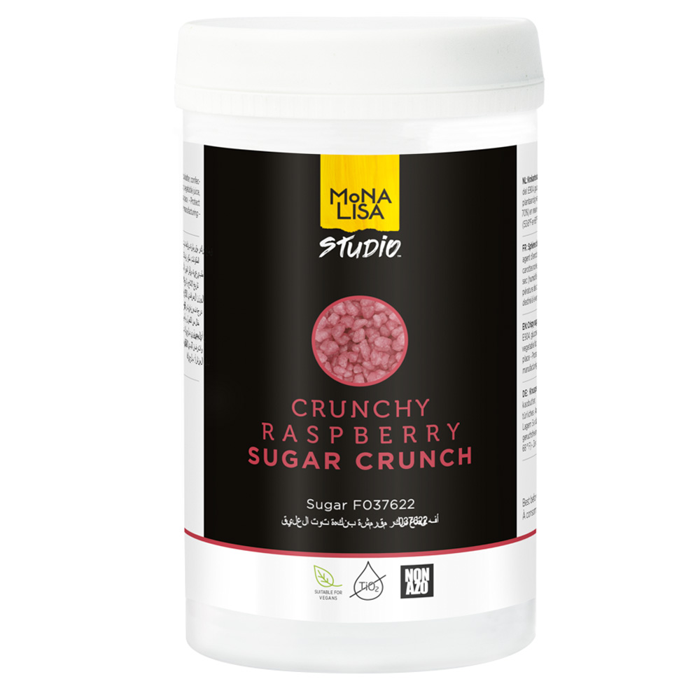 Sockerbaserat dekorationscrunch med smak av hallon från Mona Lisa Studio.
