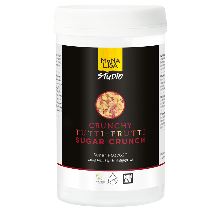 Sockerbaserat dekorationscrunch med smak av tutti frutti från Mona Lisa Studio.